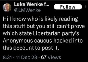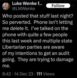 luke wenke x twitter screenshot racism larry sharpe libertarian n-word