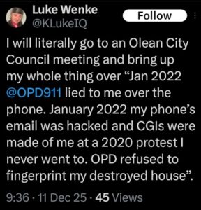 NOTE: In the weeks leading up to his most recent arrest on 12/17/2025, Luke Wenke used “Hamas” as a code word for several of his victims including myself, Ryan (his romantic obsession), and the Minnesota attorney he served prison time for cyberstalking.
