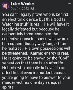 luke wenke facebook screenshot 2023 witchcraft ryan obsession
