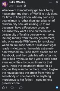 luke wenke facebook screenshot 2023 ecmc self-pity