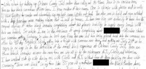 Transcription of Excerpt: “Let’s start by talking up Orleans County Jail rather than calling out it’s flaws. There is no racism here. There are two black corrections officers here. I know neither of their names. One is skinnier with glasses and he walks by never forgetting to smile and cheerfully say my last name Wenke out loud. The other one is bald and more militant with a deep baritone voice making claims that I will be famous. I have seen him use authority to tame down the rampant emotions of other black inmates complaining about this place’s inability to supply every inmate with their own tablet. So while I am in the business of openly complaining about [Black enemy inmate]’s ridiculous status here somehow getting Suboxone in when he isn’t even from the area and him being placed back into the commons area after his 40 day ‘Keyblock’ stint, getting into a fight with someone over there, and getting out July 24th as he says, in no way is he the definition of the overall black experience at Orleans County Jail. There are three black inmates across the room from me who all go by the nicknames A.J., Chello, and Wolverine. I have walked side by side during rec. with Chello and A.J. without fear of them tackling me down while screaming ‘Jesus was black’ in my face like 35 year old grandfather [enemy inmate] the Black Panther does.”